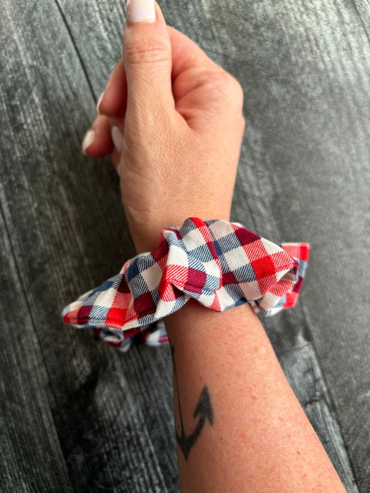 Red, White, and Blue Gingham - Cotton Scrunchie