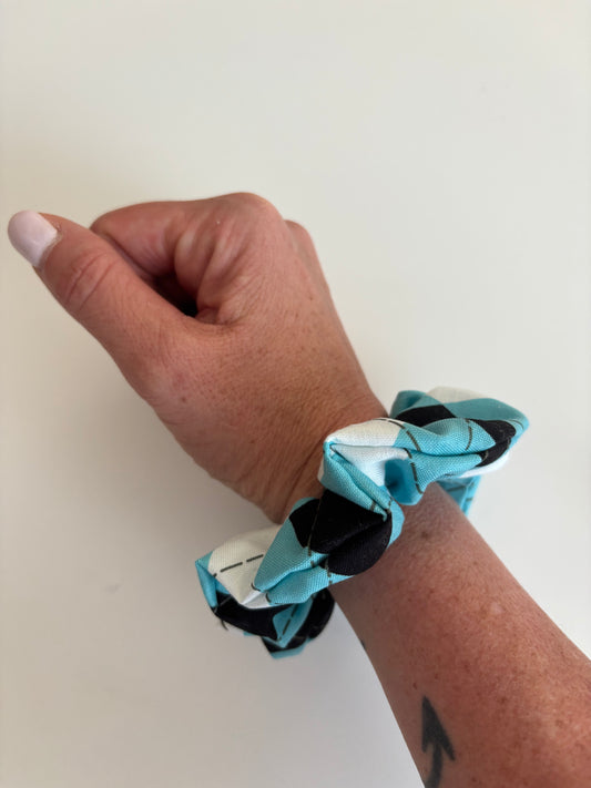 Holiday Argyle Evergreen and Gold - Cotton Scrunchie