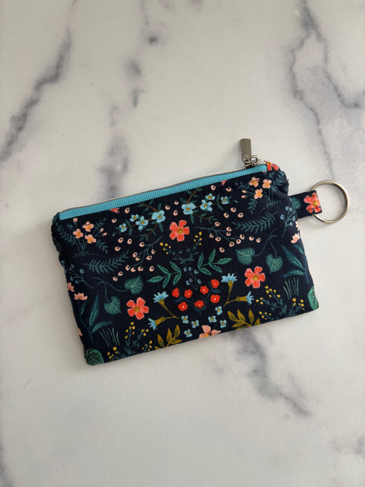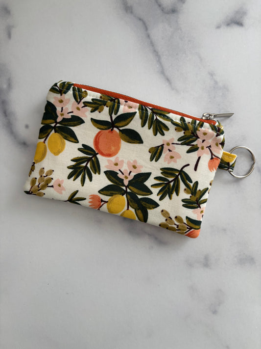 Citrus Floral Teal - Lanyard/Keychain Wallet