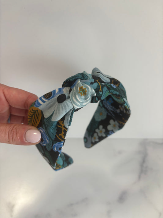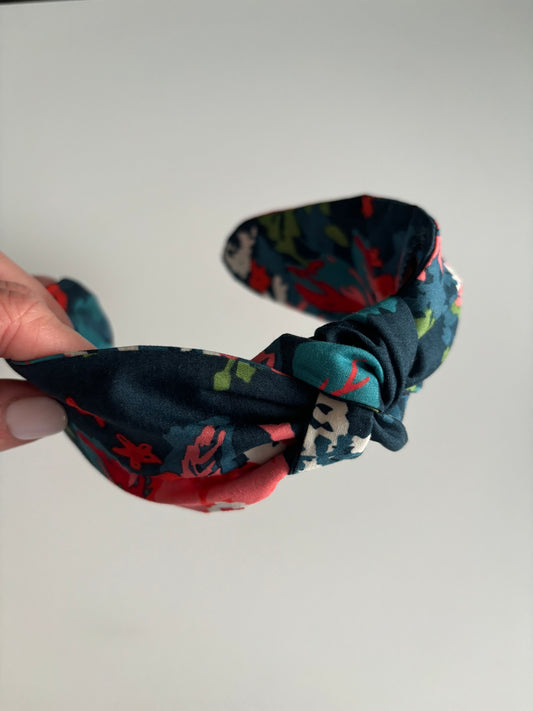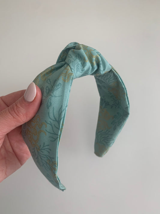 Sparkly Gold Leaf Print on Green - Knotted Headband