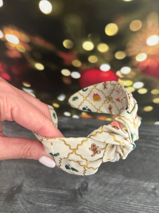 Holly Jolly Nutcracker Cream and Gold - Knotted Headband