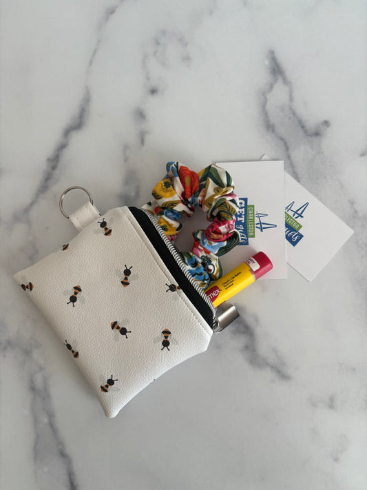 Bees on White Faux Leather - Zippered Pouch (Mini Sized)