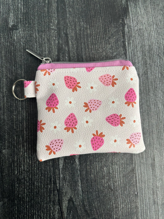 Strawberries Faux Leather - Zippered Pouch (Mini Sized)