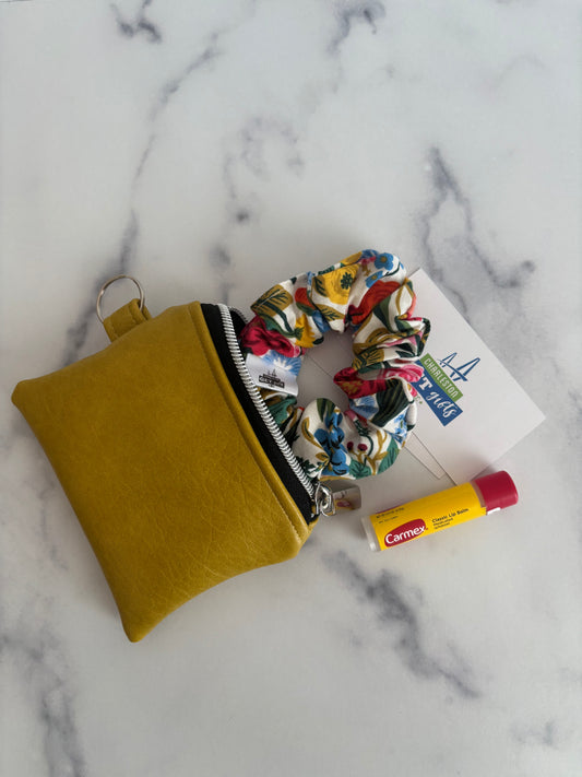 Mustard Yellow Faux Leather - Zippered Pouch (Mini Sized)