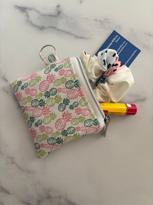 Pineapples on White Faux Leather - Zippered Pouch (Mini Sized)