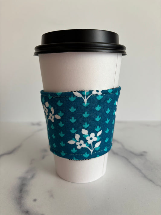 Sweetie Aqua Floral - Reusable Coffee Sleeve