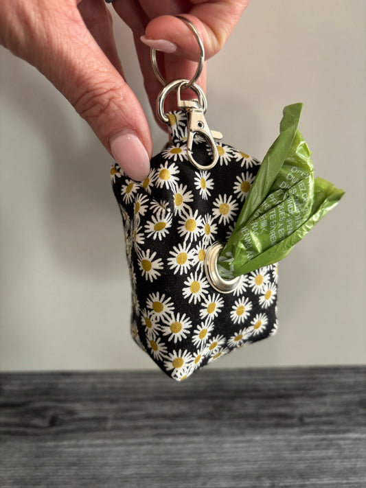 Sparkly Daisies on Black - Waste Bag Dispenser