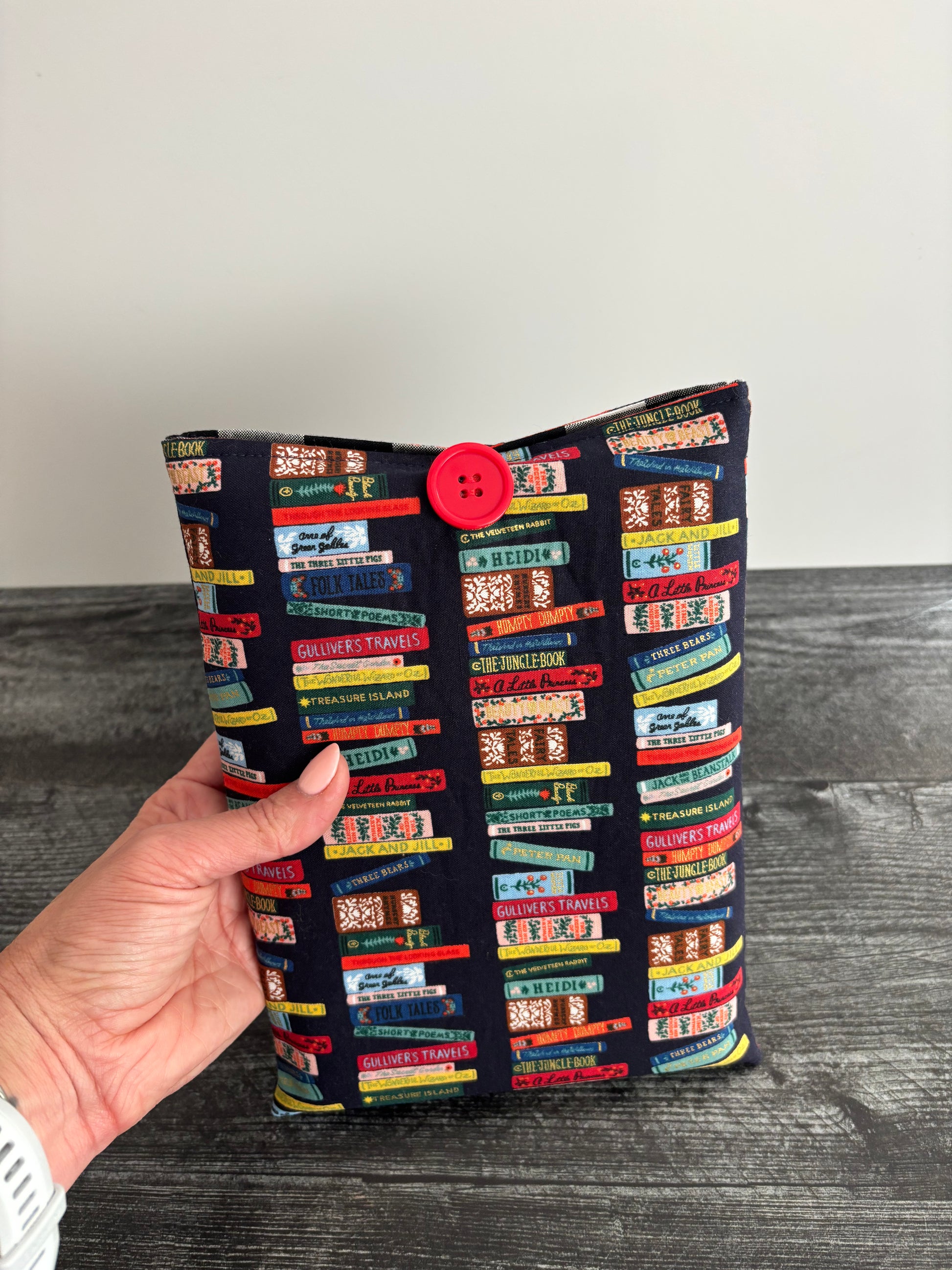 Book sleeves are the perfect gift for the readers of your life. They allow you to keep your book nice and safe by hugging your book closed and keeping it secure. You can drop these book sleeves into your bag with confidence that they will stay closed due to their button closure. They are sewn with a quilt batting and fully lined to give your books a little extra protection.