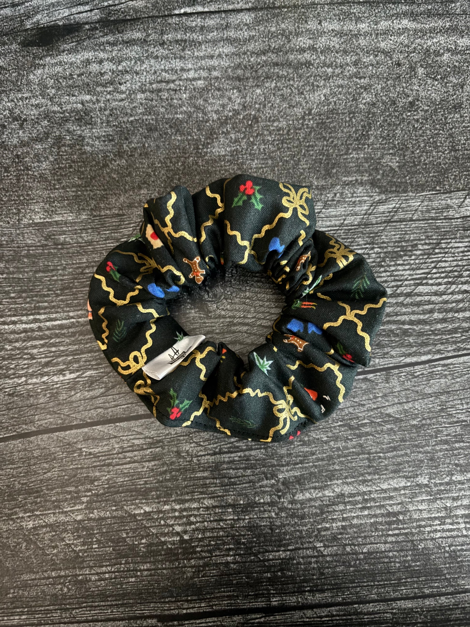 Holiday Argyle Evergreen and Gold - Cotton Scrunchie