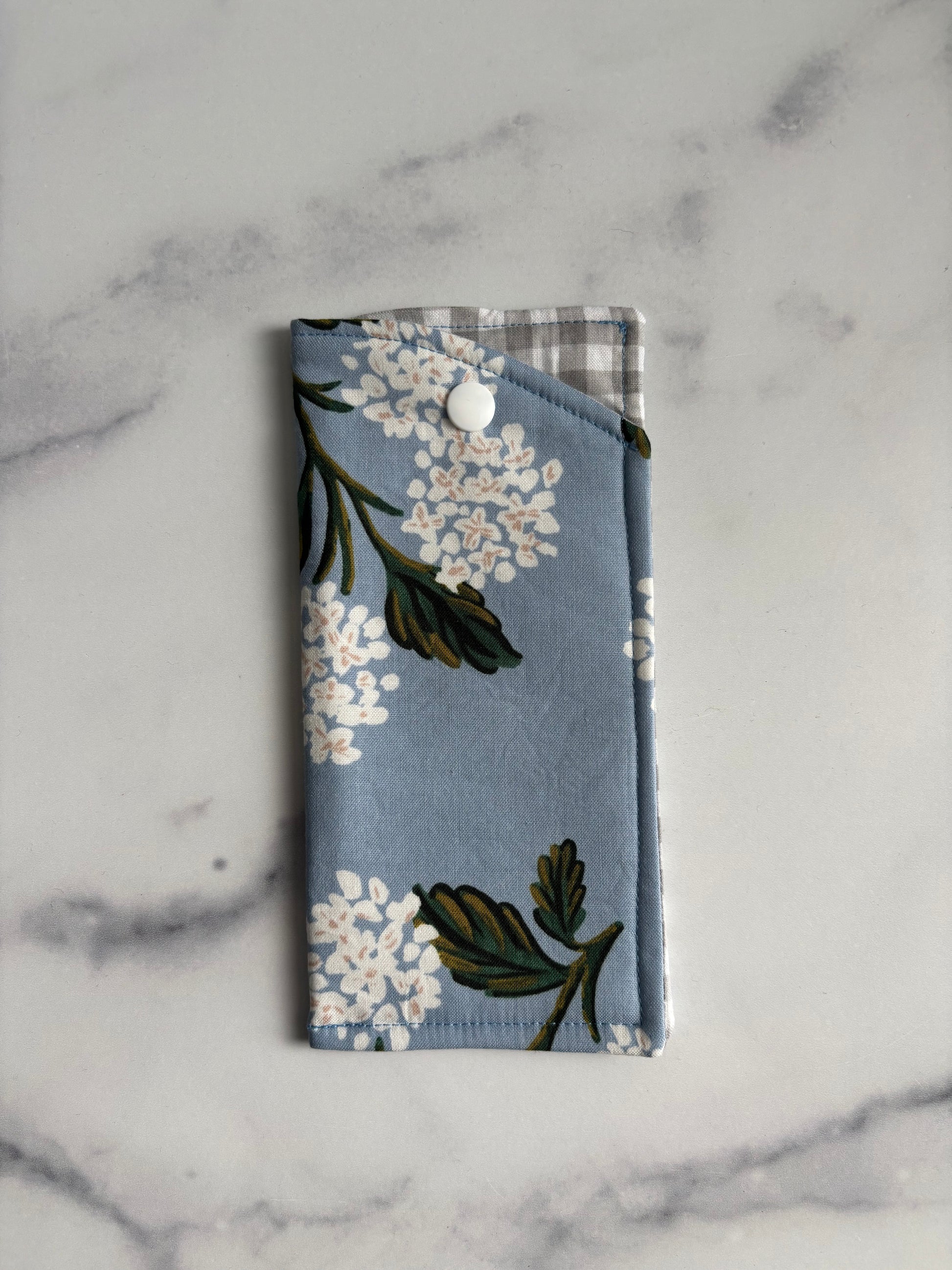 Our glasses cases are the perfect way to keep your sun glasses or eye glasses safe while allowing you to express yourself with a little pop of pizzazz. They all come fully lined and interfaced with a fluffy quilting stabilizer perfect for keeping your frames and lenses protected. They also come with a snap enclosure allowing you to keep your glasses safe from sliding out while they stay protected in their comfy little pouch. They make a great gift as most people would appreciate something practical and beautiful especially if it’s handmade.
