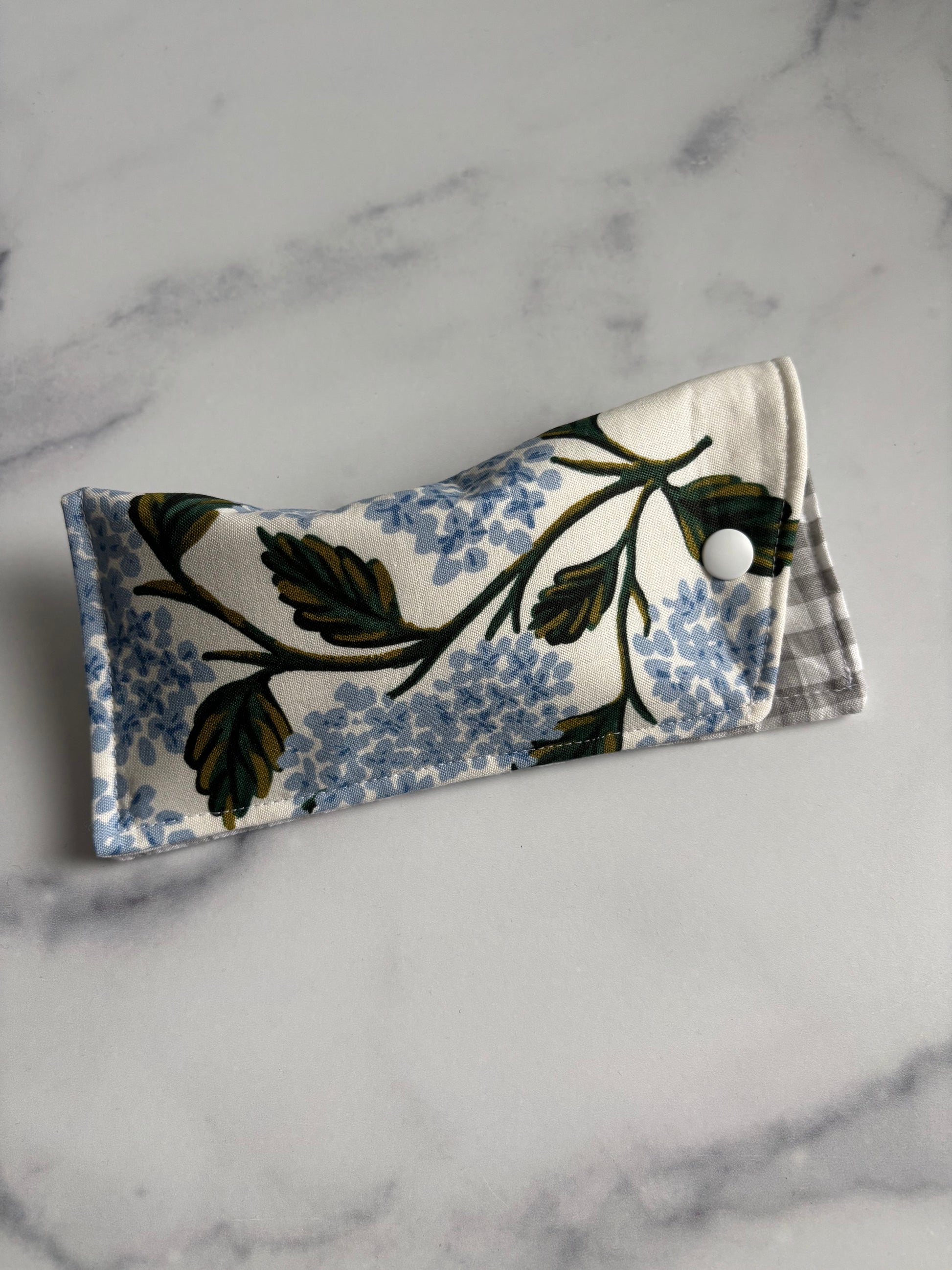 Our glasses cases are the perfect way to keep your sun glasses or eye glasses safe while allowing you to express yourself with a little pop of pizzazz. They all come fully lined and interfaced with a fluffy quilting stabilizer perfect for keeping your frames and lenses protected. They also come with a snap enclosure allowing you to keep your glasses safe from sliding out while they stay protected in their comfy little pouch. They make a great gift as most people would appreciate something practical and beautiful especially if it’s handmade.