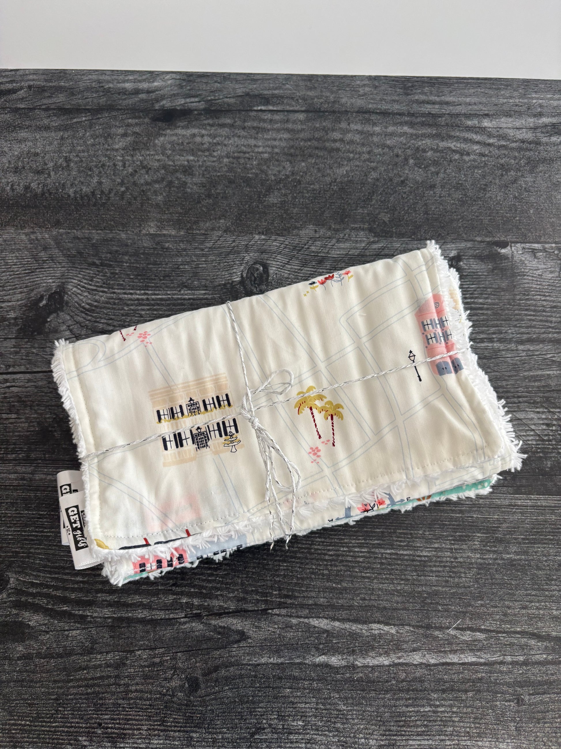 Each burp cloth is handmade and measures approximately 9"x15.5”.