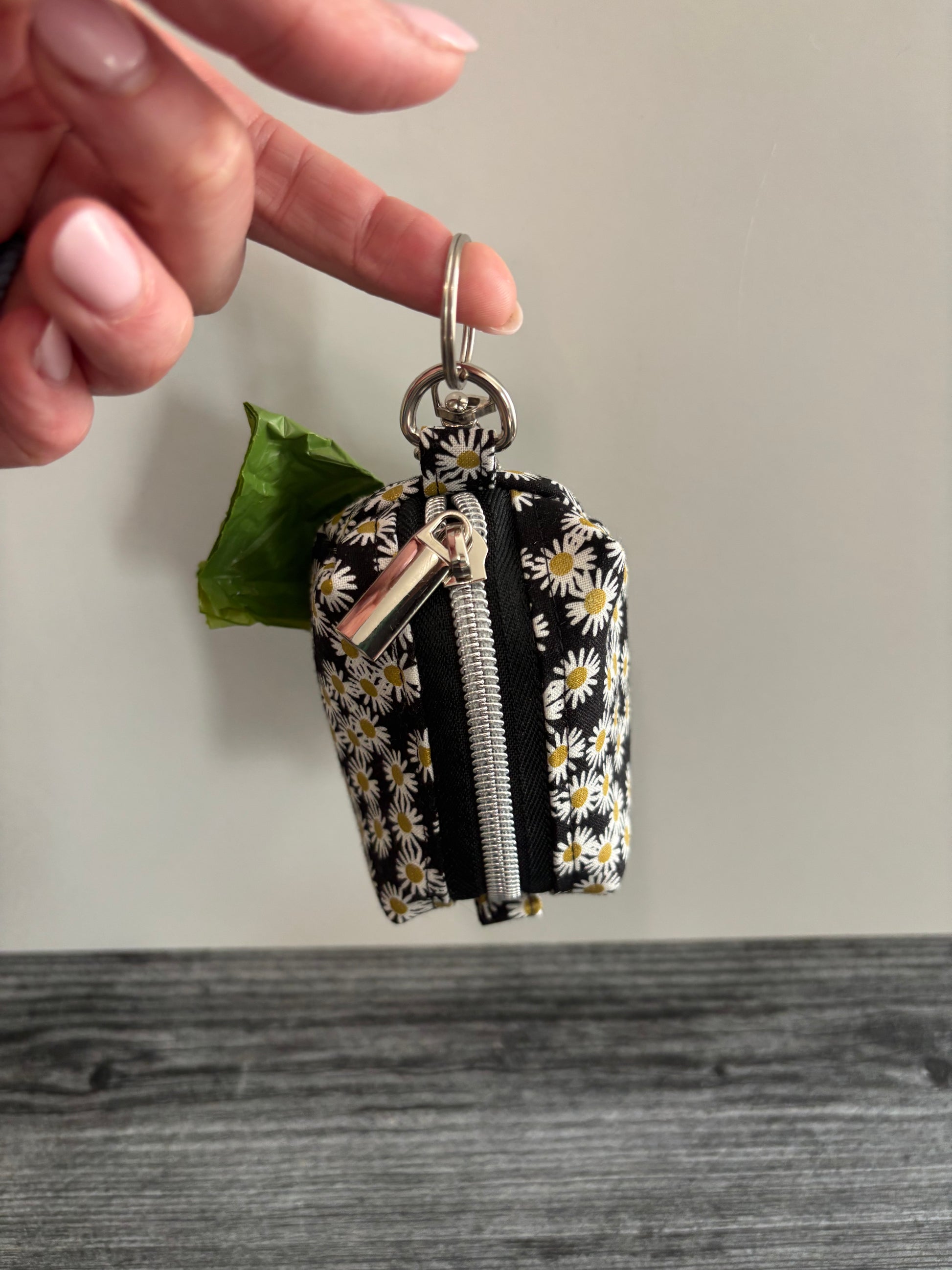 Sparkly Daisies on Black - Waste Bag Dispenser