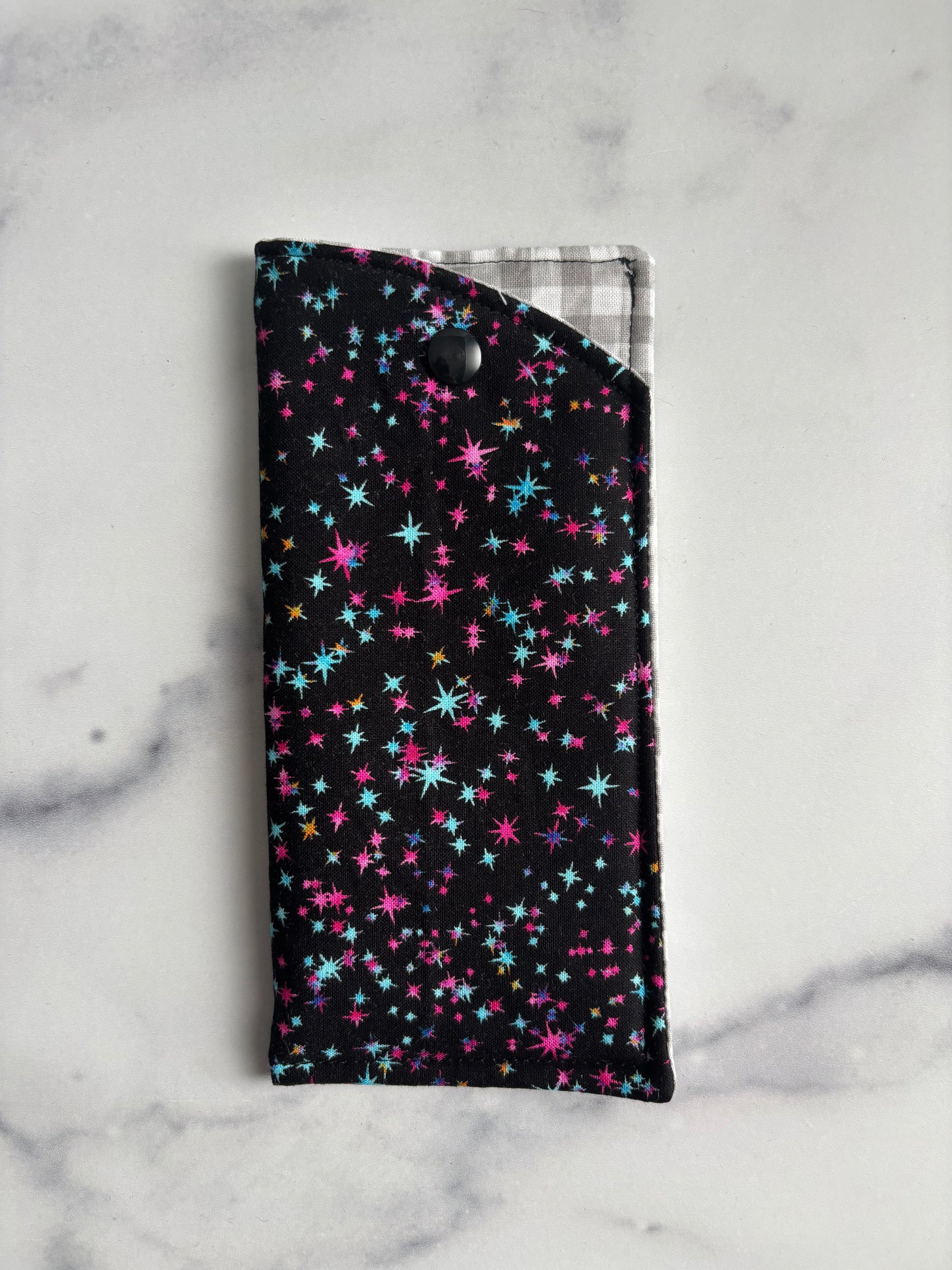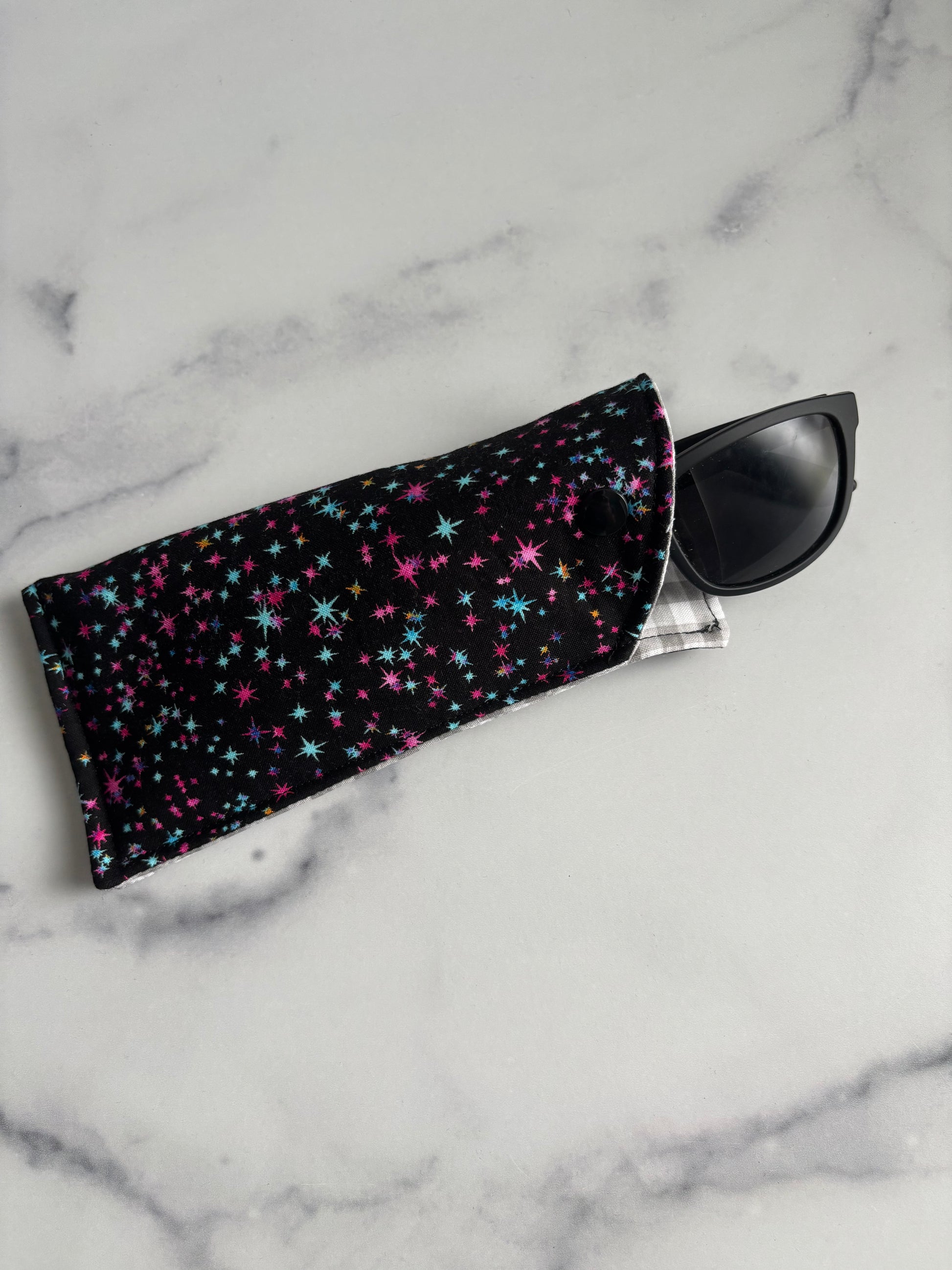 Our glasses cases are the perfect way to keep your sun glasses or eye glasses safe while allowing you to express yourself with a little pop of pizzazz. They all come fully lined and interfaced with a fluffy quilting stabilizer perfect for keeping your frames and lenses protected. They also come with a snap enclosure allowing you to keep your glasses safe from sliding out while they stay protected in their comfy little pouch. They make a great gift as most people would appreciate something practical and beautiful especially if it’s handmade.